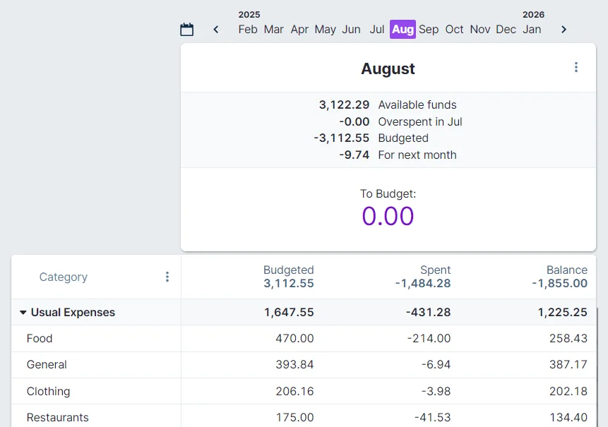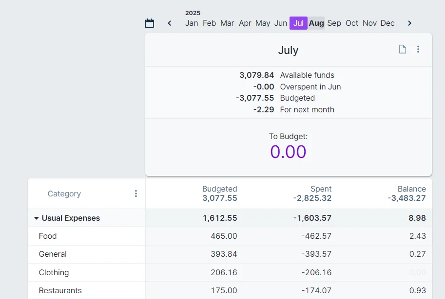 At the end of July, our Budget looks like this: